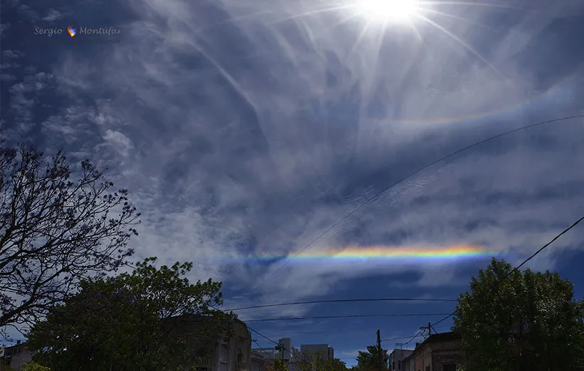 این قوسهای رنگارنگ در آسمان چه هستند؟ درست مثل رنگین کمان که بعد از باران بوجود میآید، قوسهای رنگی نزدیک خورشید زمانی بوجود میآیند که کریستالهای یخ در اتمسفر زمین پراکنده میشوند. در این صورت، آنها مثل منشوری عظیم عمل میکنند. قوس رنگارنگ بالای تصویر، خیلی مرسوم است چرا که قسمتی از هالهی ۲۲ درجهای دور خورشید را تشکیل میدهد. زمانی که کریستالهای یخ ۶ وجهی نور خورشید را بین دو تا از ۶ وجه خود میشکنند. قوس رنگارنگ پایینی کمی غیر عادی است. این پدیده گاهی اوقات با نام رنگین کمان آتشین هم شناخته میشود. این «قوس دور افقی» (Circumhorizon arc) هم بر اثر برخورد نور خورشید با کریستالّهای یخ بوجود آمده است. منتها در این جا یک سری یخهای نازک، افقی و مسطح که در ابرهای پر ارتفاع سیروس قرار دارند، نور خورشید را بین وجههای بالایی و پایینی خود شکستهاند. این قوس فقط زمانی رخ میدهد که ارتفاع خورشید بیشتر از ۵۸ درجه از افق است. این عکس ماه پیش در یکی از محلههای شهر بوئنوس آیرس آرژانتین گرفته شده است.