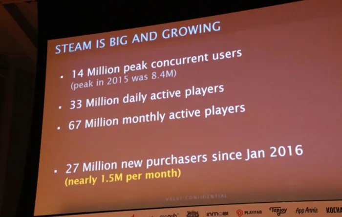 یتوان گفت که از ژانویهی سال 2016 میلادی، در هر ماه 1.5 میلیون نفر به تعداد کاربران استیم اضافه شده است.