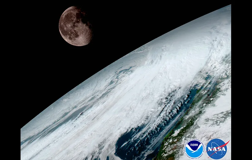 ماهوارهی GOES-16 نوامبر گذشته از پایگاه کیپکاناورال متعلق به نیروی هوایی به فضا پرتاب شد. این ماهواره اکنون در فاصلهی ۳۵٫۸۸۸ کیلومتری از سطح زمین و مدار زمینثابت قرار گرفته است. دوربین بسیار پیشرفتهی ماهواره ۱۵ ژانویه عکس بالا را از زمین و ماه گرفته. این ماهواره میتواند هر ۱۵ دقیقه یک عکس فوقالعاده با کیفیت از قرص زمین در ۱۶ کانال مختلف تهیه کند. تصاویری که میتوانند دقت پیشبینیهای هواشناسی را به طور چشمگیر افزایش دهند. درست مثل ماهوارههای قبلی GOES، ماهوارهی GOES-16 هم از ماه برای کالیبره کردن دوربین خود استفاده میکند.
