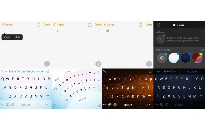 برنامهی Word Flow تمها و پوستههای مختلف پیشزمینهی کاربران (احتمالا ویژگیهایی که از خرید SwiftKey مایکروسافت در گوشی موجود است) را پشتیبانی میکند. کیبورد iOS، تایپ یک دستی را روی یک کیبورد منحنی با قابلیت تایپ سوآیپ پشتیبانی میکند. مطابق همیشه، اپل هنوز به کیبورد دیگری اجازه نداده پسوورد تایپ کند، بنابراین گزینهی بازگشت به کیبورد اولیه موجود است. شاید این اقدام مایکروسافت طرفداران این شرکت را ناامید کند. چرا که ویژگیهای سیستم عامل موبایل این شرکت در اختیار کاربرانی قرار میگیرد که از سیستم عاملهای دیگر استفاده میکنند.
