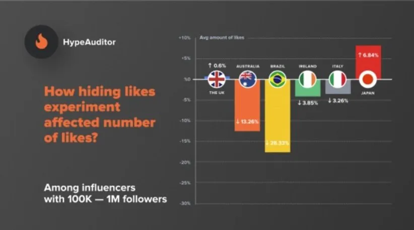 شرکت HypeAuditor که بهعنوان رابط بین کسبوکارها و اینفلوئنسرهای اینستاگرامی فعالیت میکند، اعلام کرده در این کشورها بعد از آغاز پروژه مخفیسازی لایکها، تعداد لایکهای دریافتی پای پستهای اینفلوئنسرها حدود 3 تا 15 درصد کاهش یافته است. در این بین، در کشور ژاپن تعداد لایکهای اینفلوئنسرها با وجود اینکه مخفی بوده، حدود 6 درصد رشد داشته است. بیشترین کاهش لایک اینفلوئنسرها هم مربوط به کشور برزیل است که افراد دارای 100 هزار تا 1 میلیون فالوور، با کاهش 28.33 درصدی لایک روبرو شدهاند.