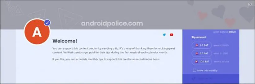 70 درصد از درآمد حاصله از تبلیغات نصیب کاربر میشود و این مرورگر 30 درصد آن را نگه میدارد. در ضمن باید خاطرنشان کنیم که فقط چند کشور اروپایی و قرار گرفته در قاره آمریکا به علاوه هند، استرالیا، آفریقای جنوبی، فیلیپین، سنگاپور و نیوزیلند میتوانند از این سیستم تبلیغاتی استفاده کنند. بعد از دریافت این ارز مجازی، کاربران میتوانند آن را به سایتهای مشخص، خالقان محتوا یا حتی اکانتهای توییتری مورد علاقه خود اهدا کنند. همچنین مرورگر Brave قصد دارد بهزودی امکان تبدیل این ارز مجازی به مواردی مانند اقامت در هتل و دریافت کارت هدیه را فراهم کند.