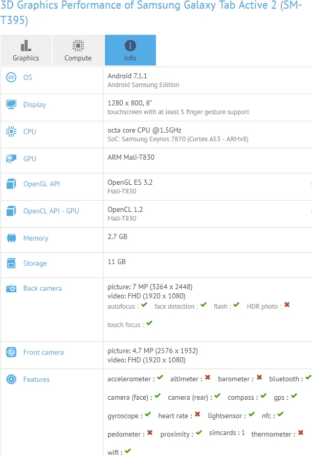 امروز مشخصات تبلت جدید سامسونگ به بیرون درز کرد. تبلتی که با توجه به مشخصات سخت افزاری آن جزو محصولات میان‌رده قرار میگیرد. در اطلاعات جدید مشخص شده که تبلت گلکسی تب اکتیو ۲ (Galaxy Tab Active 2) به تراشه اگزینوس 7880 مجهز شده است. این تراشه یک پردازنده هشت هسته‌ای با فرکانس 1.5 گیگاهرتز را در خودش قرار داده است. از طرف دیگر باید به این موضوع اشاره کنیم که تبلت جدید سامسونگ ۳ گیگابایت رم دارد.