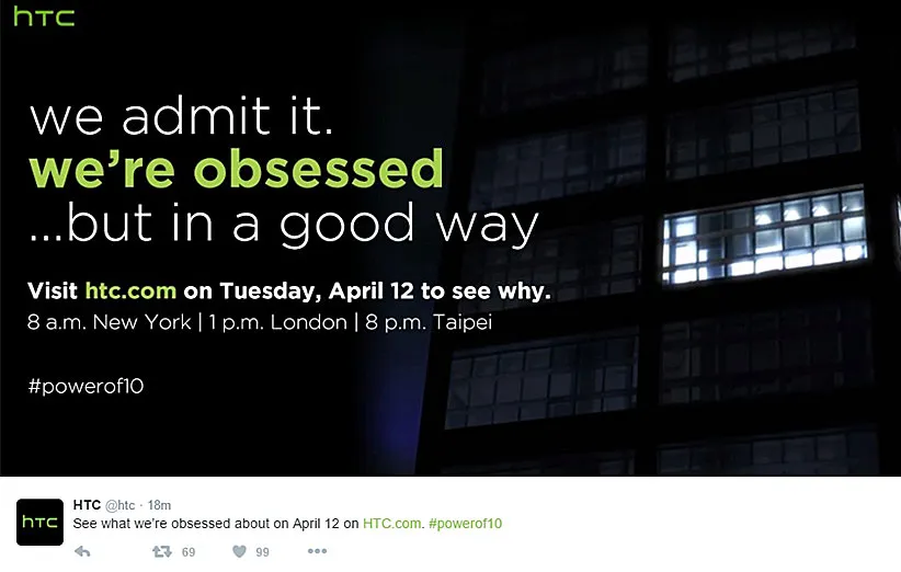 شرکت HTC رسما ۲۴ فروردین را به‌عنوان تاریخ رسمی معرفی پرچم‌دار بعدی‌اش با نام HTC 10 معرفی کرد.