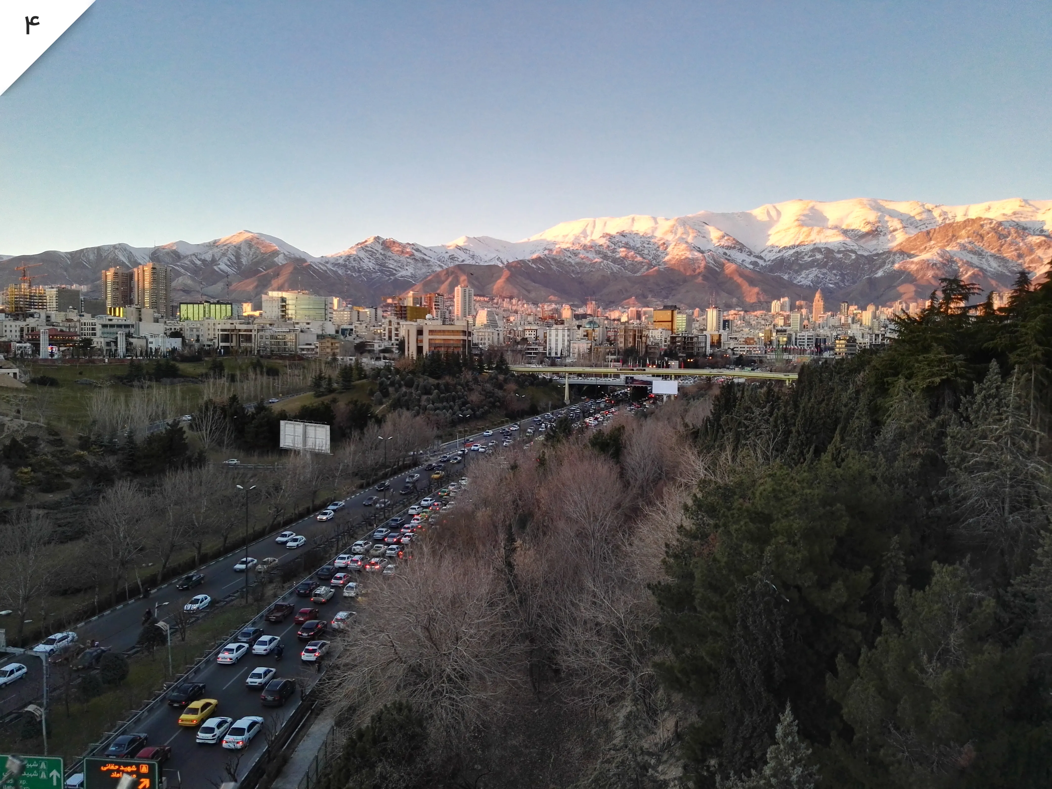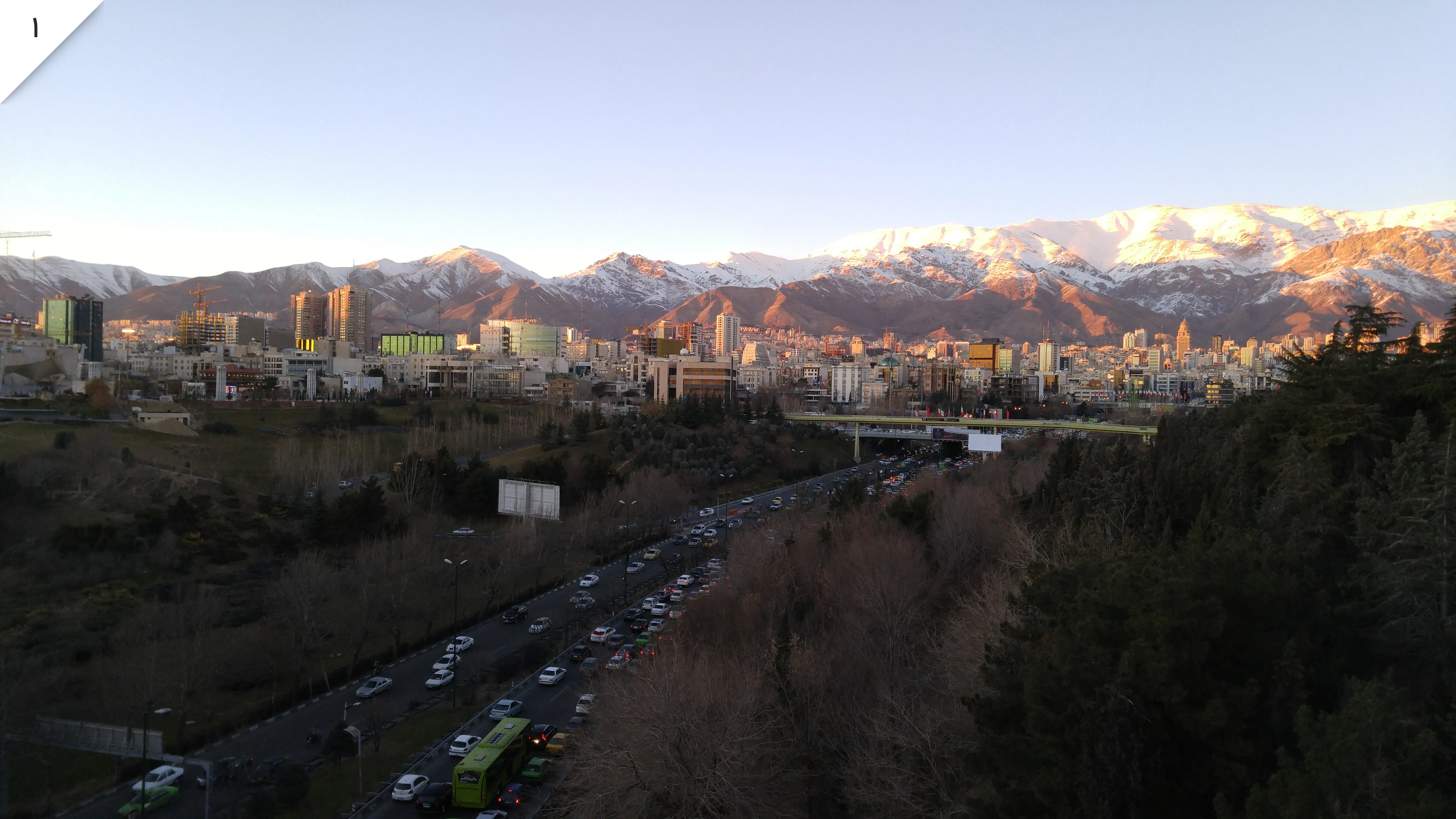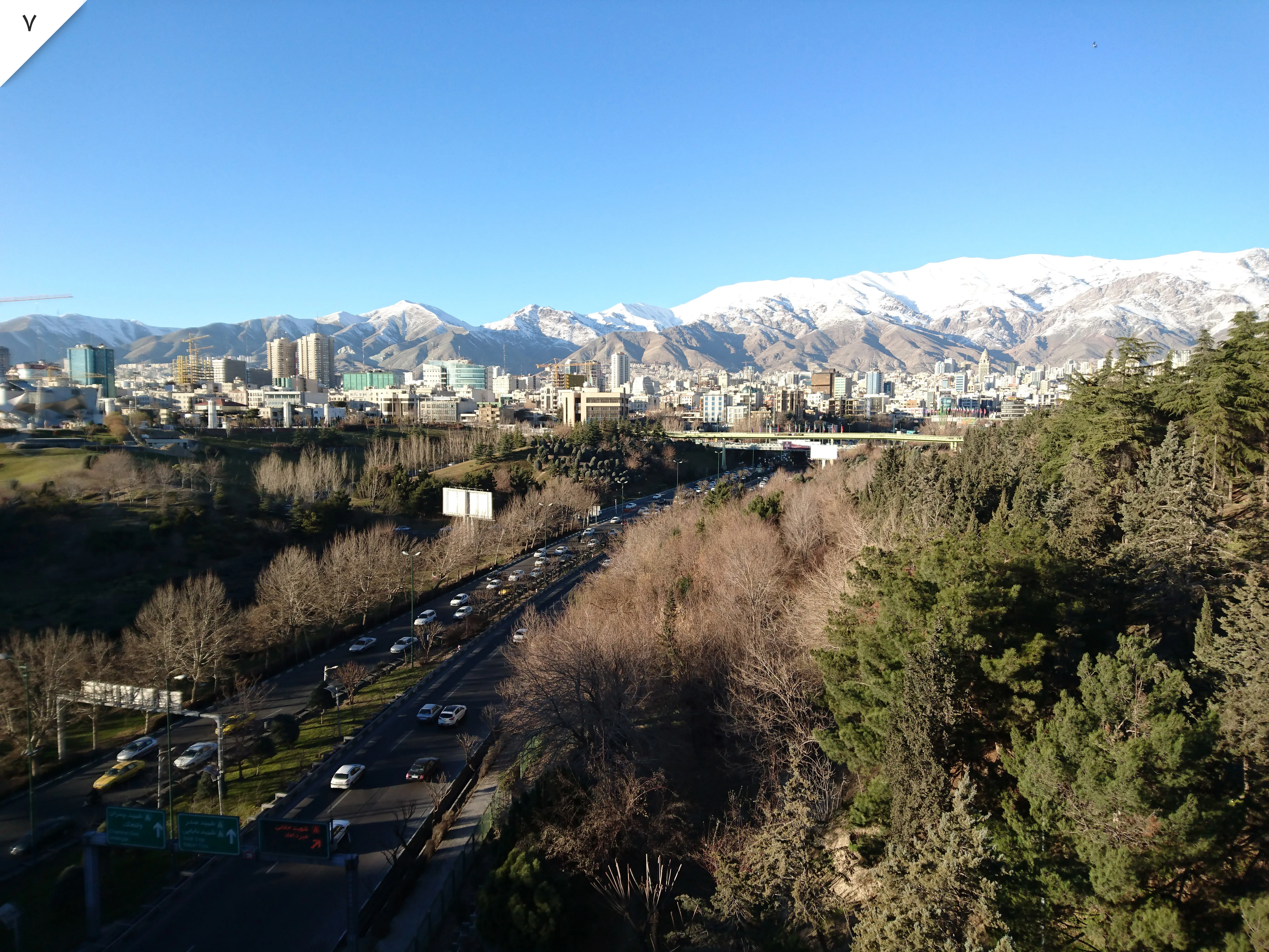 در اولین آزمون که ظهر از بالای پل طبیعت تهران و نمای بزرگراه شهید مدرس گرفته شده، دقت در ثبت جزییات (Level of Details) به علاوهی دمای رنگ (Color Temperature) و تراز سفیدی (White Balance) مورد آزمون قرار گرفتهاند.