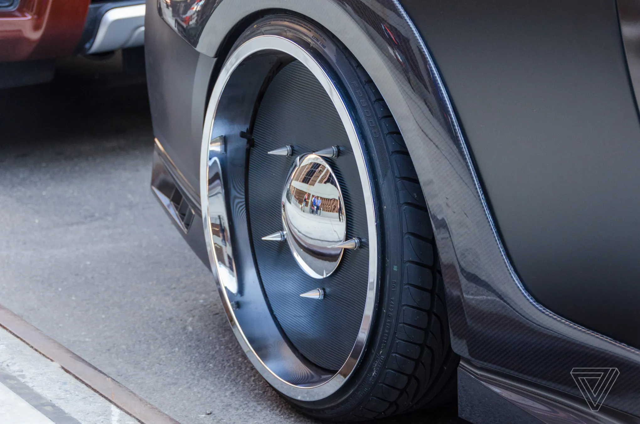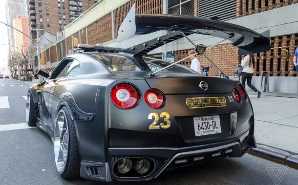بدنهی این خودرو مشکی مات استو از رینگهای 22 اینچی و کیت اگزوز ویژه بهره میبرد. در نمای جلو این خودرو هم از بلندگو و 4 چراغ LED به چشم میخورد. متاسفانه نیسان GT-R در نمایشگاه خودرو نیویورک حاضر نمیشود. پس خالی از لطف نیست که تصاویری از این خودرو هیجانانگیز را در ادامه ببینیم.