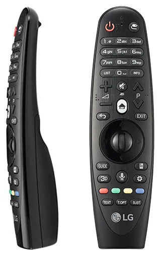 تلویزیون EG960T از ریموت کنترلی برخوردار است که الجی آن را ریموت جادویی (Magic Remote) مینامد. این ریموت کنترل، در مقایسه با مدلهای قبلی ریموتهای جادوییT کشیدهتر و جذابتر شده و ترکیبی خوب از کنترل حرکتی و دکمه را به وجود آورده است. ریموت از لحاظ عملکرد، مشابه کنترلر کنسولِ بازیِ وی (Wii) است و با حرکت دادناش میتوانید به منوی مورد نظرتان بروید. در این کنترل دیگر نیازی نیست با استفاده از کلیدهای جهت به روی آیتم مورد نظر بروید و کلید تایید (OK) را فشار دهید، بلکه این کار را با استفاده از حرکت دادن مچ دست در هوا انجام میدهید. ریموت جادویی مدل AN-MR6400 که همراه با تلویزیون ارایه میشود در مقایسه با مدلهای قبلی از دکمههای بیشتری برخوردار است و کلیدهای شمارهدار و کلید تنظیمات (Setting) دوباره سر جای خود برگشتهاند. البته اگر نور پسزمینه هم به این ریموت اضافه میشد دیگر نور علی نور بود، ولی متاسفانه خبری از این قابلیت نیست. با فشردن دکمهی Home منوی برنامههای Web OS 2.0 به نمایش درمیآید و نواری در قسمت پایینی تلویزیون را اشغال میکند. در این نوار، بلوکهایی رنگی در کنار یکدیگر قرار دارند و با قرار گرفتن اشارهگر روی هر بلوک، آن بلوک کمی زوم میشود تا مشخص شود بلوک فعال کدام است. با استفاده از این ریموت، تغییر منبع (Source) تصویر کار بسیار سادهای خواهد بود. اجرای اپلیکیشنها و بوت شدن تلویزیون خیلی سریع انجام میشود و خیلی ساده میتوانید بین ورودیهای مختلف تصویر جابجا شوید. البته گاهی اوقات در زمان جابجا شدن بین برنامهها و ورودیهای تصویر، تلویزیون کمی کند عمل میکند و چیزی شبیه به وقفه مشاهده میشود که آنقدرها عذابآور نیست؛ ولی انتظار دیدن چنین مشکلی در این تلویزیون را اصلا نداشتیم.