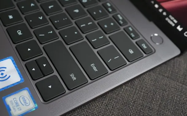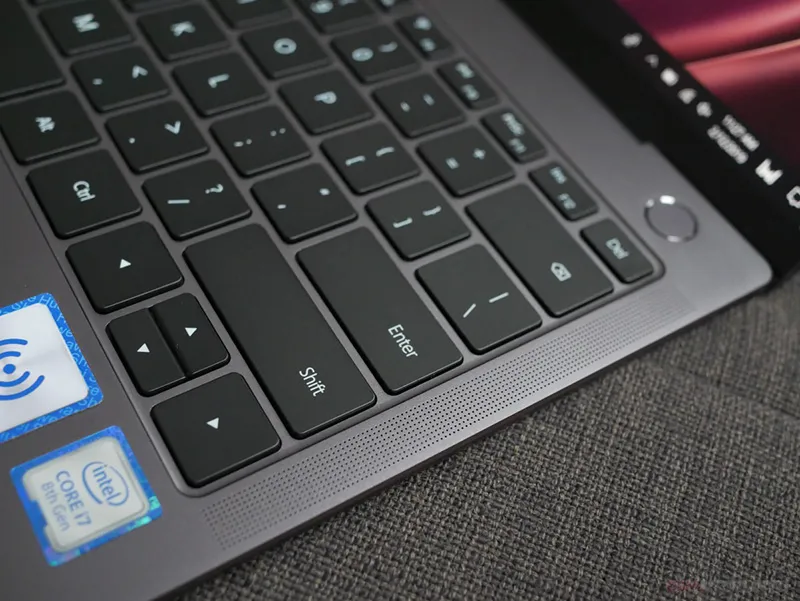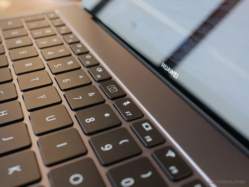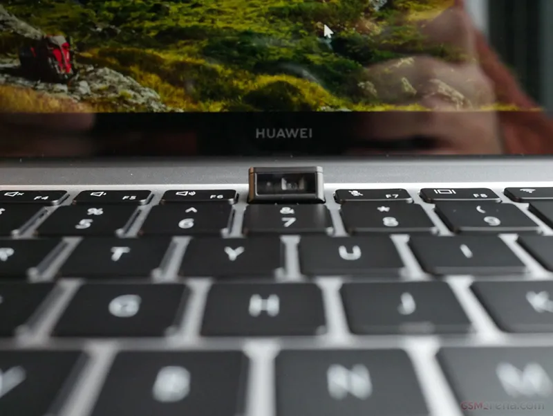 همچنین هواوی در این لپتاپ هم از نمایشگری با حشایههای اندک استافده کرده و همین موجب شده تا وبکم در این لپتاپ هم مثل MateBook X Pro به زیر یکی از دکمههای کیبرد منتقل شود. این یعنی همچنان دوربین وبکم در این لپتاپ هم ضعیف است اما وقتی به نسبت نمایشگر 90 درصدی به بخش بالایی لپتاپ نگاه میکنید، دیگر ضعف وبکم آنقدر به چشم نمیآید. همچنین قرارگیری وبکم در زیر یک دکمه کیبرد آنقدر هم بد نیست و برای مثال از نظر امنیت هم خیلی خوب است و لازم نیست با یک چسب آن را بپوشانید بلکه تنها کافی است دکمه وبکم را به پایین فشار دهید تا دیگر آن را نبینید.