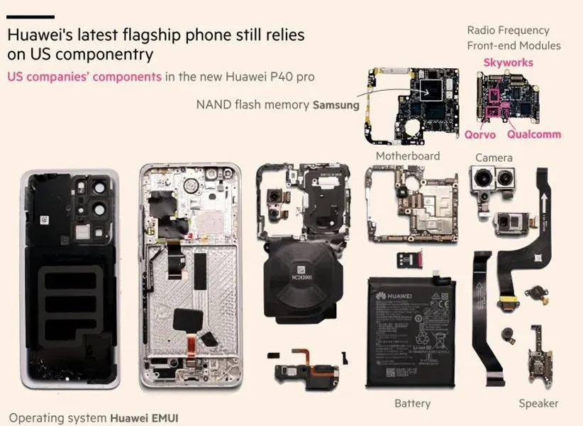 با این حال، روزنامه فایننشال تایمز با کالبدشکافی هواوی P40 پرو متوجه شده که این ممنوعیت برای گوشی موردنظر صدق نمیکند. طبق این بررسی، این گوشی از ماژولهای مربوط به فرکانسهای رادیویی و آنتنهای ساخت شرکتهای آمریکایی کوالکام، Skyworks و Qorvo بهره میبرد. اگرچه کوالکام مدتی قبل مجوز همکاری با هواوی را از طرف وزارت بازرگانی ایالات متحده دریافت کرده، اما مشخص نیست که آیا Skyworks و Qorvo هم چنین مجوزی را دارند یا نه.