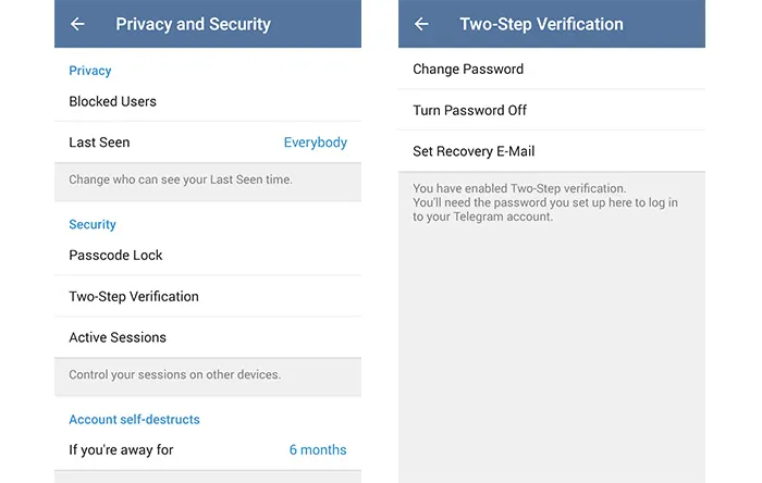 جدا از بحثهای پرحاشیهی بالا، اپلیکیشن تلگرام مثل دیگر اپلیکیشنهای از این دست، چند راه تامین امنیت در اختیار کاربرانش گذاشته که با استفاده از همهی آنها بعید است درصورتیکه یک «کاربر عادی» بوده و اطلاعات درخوری نداشته باشید تحت حمله هکری قرار بگیرید؛ نخستین سد اتصال به تلگرام شما، همان کد ۵ رقمیای است که از این شرکت برایتان ارسال میشود. حتما میدانید هر بار که تلگرام را در دستگاهی برای اولین بار نصب میکنید بعد از وارد کردن شماره تلفنتان یک کد تایید هویت برای شما فرستاده میشود.
