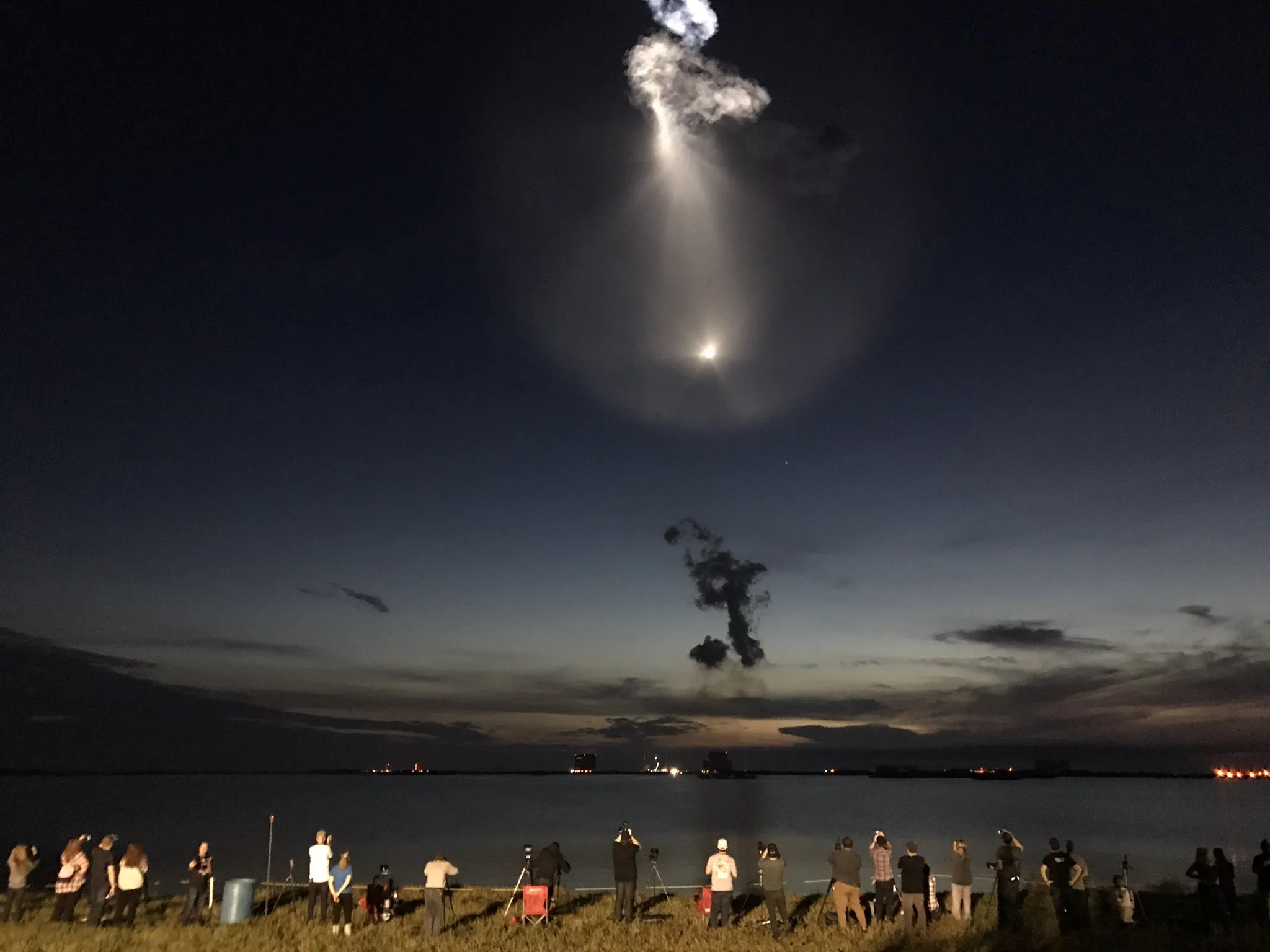 موشک فالکون ۹ به همراه کپسول دراگون از فلوریدا پرتاب شد و آسمان این ایالت را در شب روشن کرد.