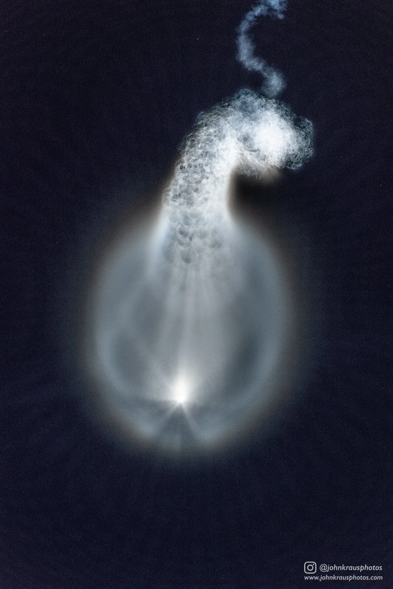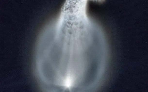 این تصویر پرتاب موشک فالکون ۹ را «نیکول اسکات»، فضانورد بازنشستهی ناسا گرفته است. حتی دود شکل گرفته هم شبیه یک اژدها (دراگون) است.