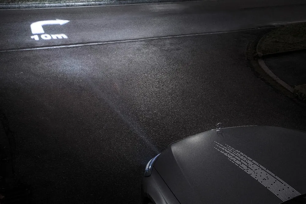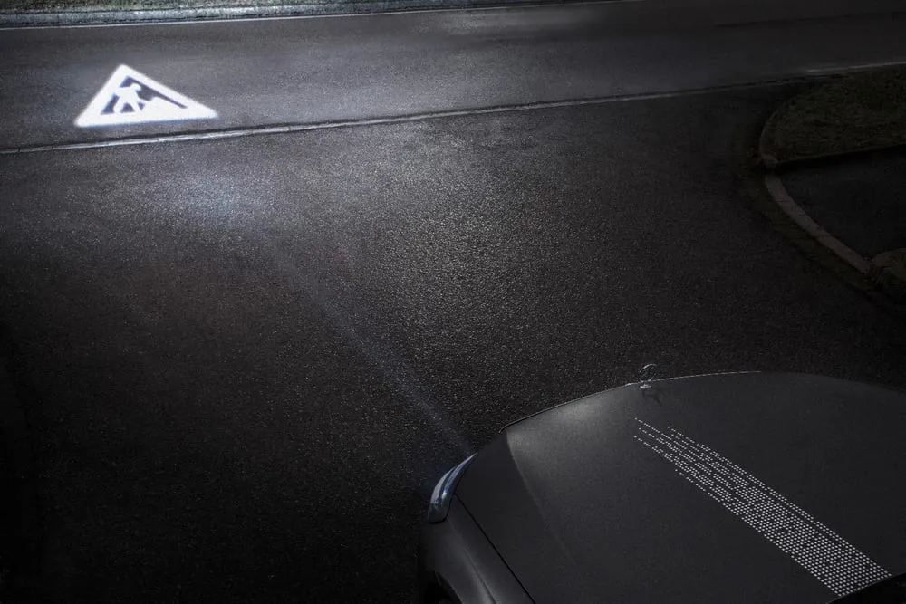 این سیستم با یکسری LED، تراشه‌‌ی کامپیوتر و آینه‌های مختلف کار می‌کند و می‌تواند تصاویری را روی زمین منعکس کند که باعث می‌شوند راننده اطلاعات بیشتری از مسیری که در پیش دارد به دست بیاورد. به‌طور مثال این سیستم می‌تواند فاصله با پیچ بعدی را روی زمین برای راننده بنویسد یا بگوید که کمی جلوتر پارکینگ قرار دارد. این سیستم می‌تواند به راننده اخطار دهد که عابر پیاده در مسیر او وجود دارد و یا حیوانی از جاده در حال عبور است.
