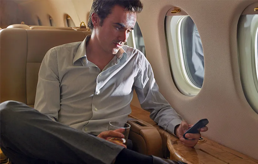 در دنیای پررقابت شرکتهای حمل و نقل هوایی، ایرلاینهایی مثل «ویرجین آتلانتیک» (Virgin Atlantic) و «دلتا ایرلاینز» (Delta Airlines) سامانههایی را تبلیغ میکنند که با استفاده از آنها میتوان حتی در هنگام پرواز نیز از دستگاههای دیجیتالی استفاده کرد. یکی از آنها سامانهی «تماس هنگام پرواز» مثل «آن ایر» (On Air) و «ایروموبایل» (AeroMobile) است که از ایستگاههای موبایل (BTS) کوچک داخل هواپیما به نام «پیکوسل» (Picocells) استفاده میکند و باعث میشود که گوشیهای همراه با انرژی خیلی کمتری امواج خود را تابش کنند. این دستگاه امواج ارسالی را پردازش میکند و به ماهواره میفرستد تا از آنجا برای ایستگاههای زمینی معمولی ارسال شوند. بنابراین با استفاده از این ایستگاههای BTS داخل هواپیما، امکان برقراری تماس تلفنی هنگام پرواز برای مسافران مهیا میشود. «کوین راجرز» (Kevin Rogers) مدیر عامل شرکت ایروموبایل این فناوری را چنین توصیف میکند:«این فناوری درست مثل سرویس رومینگی (Roaming) است که وقتی به یک کشور خارجی میروید استفاده می کنید، با این تفاوت که در آن کشور خارجی به ارتباط ماهوارهای احتیاج ندارید.» بعضی از ایرلاینها در هنگام سفارش هواپیما فناوری ایروموبایل را به صورت پیشفرض بر روی هواپیمای خود سفارش میدهند.