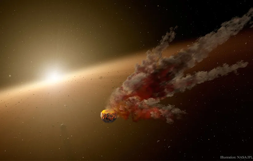 چرا نور ستارهی KIC 8462852 مرتب کم و زیاد میشود؟ هیچ کس نمیداند. این ستاره خیلی شبیه به خورشید ماست و تلسکوپ فضایی کپلر مرتب آن را رصد میکند تا ببیند آیا در مدار آن سیارهای گردش میکند یا خیر. دانشمندان به کمک فعالان آماتور علوم شهروندی فهمیدند که نور این ستاره به صورت نامنظم کم و زیاد میشود. مثلا به مدت یک ماه تا ۲۰ درصد افت کرده و دوباره افزایش یافته بود. دلایل معمول برای کم شدن نور این ستاره مثل سیارههای فراخورشیدی یا ستارههای همدم با الگوی کم و زیاد شدن نور این ستاره همخوانی ندارد. یکی از نظریههای کنونی این است که نور ستاره توسط گرد و غبار باقی مانده از یک سیارهی متلاشی شده یا تودهای از دنبالهدارها کم میشود. ولی در عین حال هنوز مشخص نیست که چرا نور ستاره به طور کلی در ۱۲۵ سال گذشته کم شده است. عکسی که میبینید یک تصویر هنری از سیارهای متلاشی شده است که در مدار این سیاره گردش میکند. رصدهایی که اخیر انجام شده نتوانسته نور فروسرخ هیچ دیسک چرخندهای را پیدا کند.