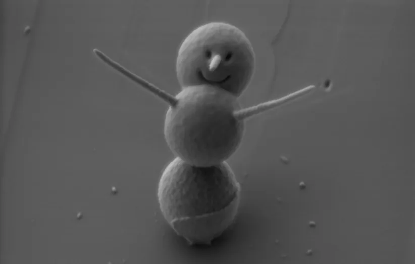 این آدم برفی با استفاده از بافت نانو ساخته شده و برای دیدن آن هم به میکروسکوپ نیاز خواهید داشت. البته وقتی به این آدم برفی نگاه کنید، متوجه میشوید که در حال لبخند زدن به شما است. ارتقاع این آدم برفی 3 میکرون یا 3 هزارم میلیمتر است. بد نیست بدانید که ضخامت موی انسان به 75 میکرون یا 0.075 میلیمتر میرسد.