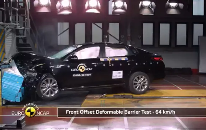 گزارش موسسه یورو انکپ نشان میدهد که در تست تصادف از جلو با سرعت 64 کیلومتر بر ساعت با مانع نرم، وضعیت راننده در تصادف از جلو کاملا ایمن است؛ این یعنی احتمال آسیبدیدگی به اندامهای راننده کم و جزئی ارزیابی میشود. سرنشین شاگرد هم همین وضعیت را دارد اما احتمال دارد که به ساق پای سمت راست او کمی آسیب وارد شود.