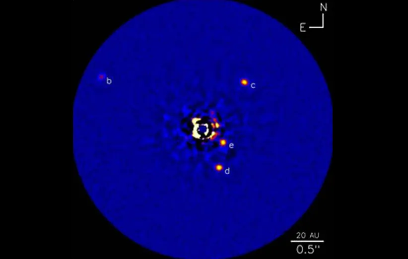 آیا ممکن است خارج از منظومهی شمسی ما زندگی وجود داشته باشد؟ برای فهمیدن آن ناسا پروژهی NExSS را راهاندازی کرده است. پروژهای که به دانشمندان کمک میکند بتوانند منظومههای ستارهای دوردست را خیلی بهتر و دقیقتر بررسی کنند و در آنها به دنبال حیات احتمالی بگردند. تصویر شگفتانگیزی که در بالا میبینید ستارهای در فاصلهی ۱۳۰ سال نوری از ما و در صورت فلکی تکشاخ به نام HR 8799 را نشان میدهد که چهار سیاره در مدار آن گردش میکنند. این ویدیوی تایملپس طی ۷ سال عکاسی مستقیم رصدخانهی کِک در هاوایی گرفته شده است. چهار سیاره را میتوانید به صورت نقاطی روشن ببینید که دور ستارهی مرکزی گردش میکنند. ستاره به طور عمدی ماسک شده تا با درست کردن یک کسوف مصنوعی سیارات فراخورشیدی نمایان شوند. این ستاره اندکی از خورشید پرجرمتر است و چهار سیارهی آن هم به نظر میرسد کمی از مشتری بزرگتر باشند. اکنون دانشمندان در حال پژوهش روی این منظومهی ستارهای هستند که ببینند آیا سیارهی دیگری میتوانند در آن کشف کنند یا خیر. همچنین آنها امیدوار هستند بتوانند در این منظومه نشانههایی از حیات پیدا کنند.