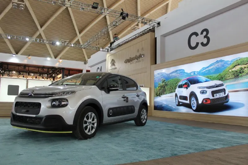 پشت غرفهی سایپا، غرفهی سایپا-سیتروئن قرار داشت. سایپا سیتروئن شرکت جوینتونچر با سهم 50-50 درصدی است و در تلاش است که با خودروی C3 به بازار وارد شود. C3 یک هاچبک کوچک شهری با طراحی جذاب و متفاوت است که به عنوان رقیبی برای هیوندای i20 و میتسوبیشی میراژ به حساب میآید. البته قیمت نقش بسیار مهمی در موفقیت این خودرو بازی میکند و مسئولان غرفه قول قیمت زیر 100 میلیون تومان را به ما دادند. قیمت جهانی این خودرو بین 12 تا 18 هزار یورو است.