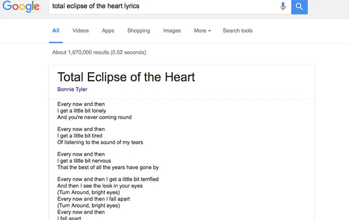گوگل متن ترانهها را به نتایج جستجوها میافزاید