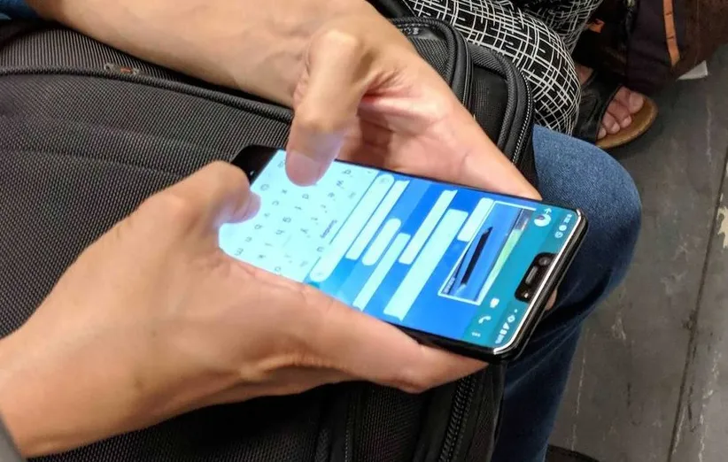 با توجه به عکس اول، مشخصا شخص مورد نظر را در حال استفاده از پیکسل 3 در اپلیکیشن واتساپ نشان میدهد. به همین ترتیب میتوان دید که ناحیه اطراف بریدگی، با رنگ تیرهتری در اپلیکیشن واتس اپ نمایش داده شدهاند. در پایین عکس نیز ترکیب نوار ژستهای حرکتی اندروید پای با پس زمینه مشکی و حاشیه پایینی نمایشگر، تشخیص اندازه حاشیه پایینی نمایشگر گوشی را برای ما سخت میکند. همچنین در بریدگی بالای نمایشگر نیز شاهد دو دوربین هستیم که ممکن است این دو دوربین برای فناوری تشخیص چهره به کار برده شوند.