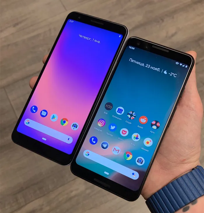 اگر با توجه به شباهت بیاندازه این دو گوشی نمیتوانید آنها را از هم تشخیص دهید، باید بگوییم گوشی سمت چپ درواقع پیکسل 3 لایت است. حتما متوجه شدهاید که نمایشگر این گوشی کمی بلندتر است. نمایشگر این دستگاه درواقع پنلی 5.56 اینچی است که از پنل 5.5 اینچی پیکسل 3 بزرگتر است. نسبت نمایشگر پیکسل 3 لایت نیز 18.5 به 9 خواهد بود در صورتی که نسبت نمایشگر پیکسل 3، 18 به 9 است.