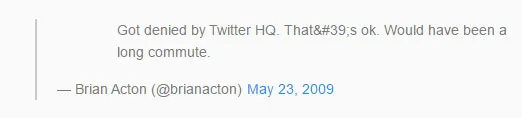 اکتون بعد از اینکه فیسبوک دست رد به سینهاش زد سراغ شرکت توییتر رفت. میخواست در یکی از شرکتهایی که به نظرش آیندهدار بودند مشغول شود؛ ولی توییتر هم او را نخواست.