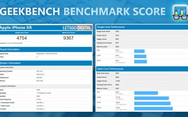 اول از همه به نتایج بنچمارک ارزانترین مدل آیفون یعنی آیفون XR نگاهی میاندازیم که قرار است با قیمت پایه 749 دلاری روانه بازار شود. در این بنچمارک، این گوشی در آزمایش تکهستهای موفق به اخذ امتیاز عالی 4754 شده و در آزمایش چندهستهای هم امتیاز 9368 را گرفته است. در کنار تراشه A12 این گوشی، 3 گیگابایت حافظه رم تعبیه شده است. باید خاطرنشان کنیم که آیفون 8 پلاس و آیفون X هم از همین مقدار حافظه رم بهره میبردند.