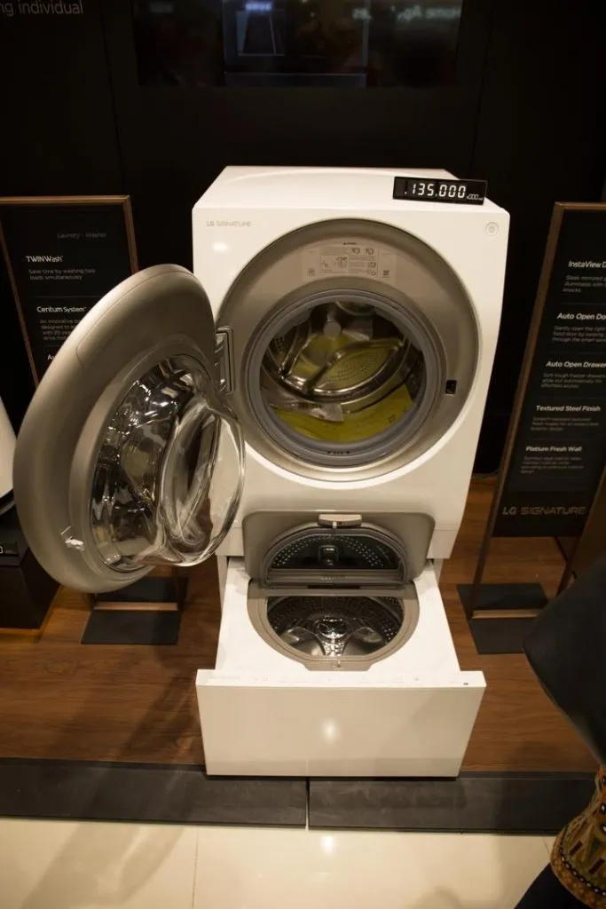 لباسشویی LG TWINWash قادر است با ترکیب یک ماشین لباسشویی کامل در جلو و یک شوینده کوچک در یک پایه مخفی دو دسته لباس جداگانه را به طور همزمان بشوید و مجموعه جدیدی از گزینهها برای شستوشو را در اختیار افراد بگذارد. ماشین لباسشویی اصلی و قدرتمند حجم زیاد لباسهای کثیف را میشوید، درحالی که شوینده کوچک میتواند برای چرخه شستوشوی متفاوتی تنظیم شود. شوینده کوچک برای لباسهای ظریف یا خاص مانند لباس زیر یا لباس بچه که به روش خاصی برای شستوشو نیاز دارند به کار خواهد آمد.