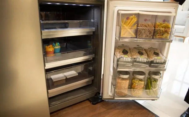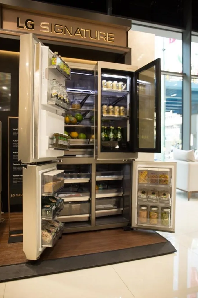 محصول دیگر، یخچال LG SIGNATURE InstaView است که طبق ادعای الجی طراحی انقلابی و هیجانانگیزی دارد. این یخچال با داشتن یک پنل منحصربهفرد تنها با زدن دو ضربه روی در شیشهای آن، داخل یخچال را به شما نشان دهد.
