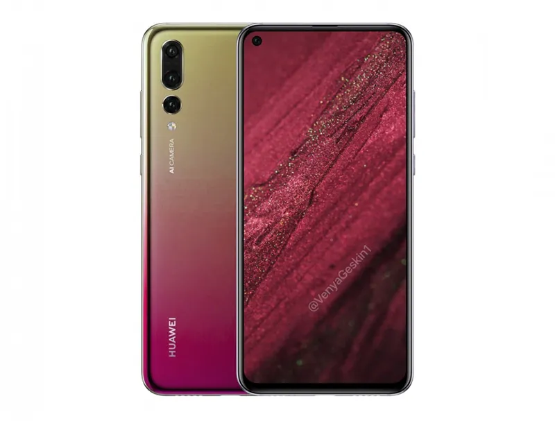 بگذارید ابتدا به سراغ تصویر رندر برویم. همانطور که شاهد هستید، طراحی بخش پشتی این گوشی، بسیار شبیه به هواوی P20 Pro بوده و تفاوت چندانی ندارد. بخش جلویی اما، خاصترین نکته طراحی این گوشی است. همانطور که در قسمت بالا سمت چپ نمایشگر شاهد هستید، یک حفره در نمایشگر وجود دارد که در واقع در این قسمت دوربین سلفی نووا 4 قرار گرفته است.