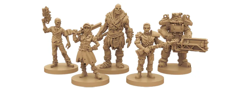 یک تا چهار نفر میتوانند بازی تختهای فالآوت را بازی کنند. بازیکنندهها میتوانند از همان ابتدا یک سرباز جبههی Brotherhood of Steel باشند، یا اینکه به عنوان یک غول، Super Mutant یا انسان بازی را آغاز کنند. شخصیتها مثل بازی اصلی فالآوت، مشخصههایی دارند که قدرت، هوش یا دیگر مهارتهای آنها را تعیین میکند.