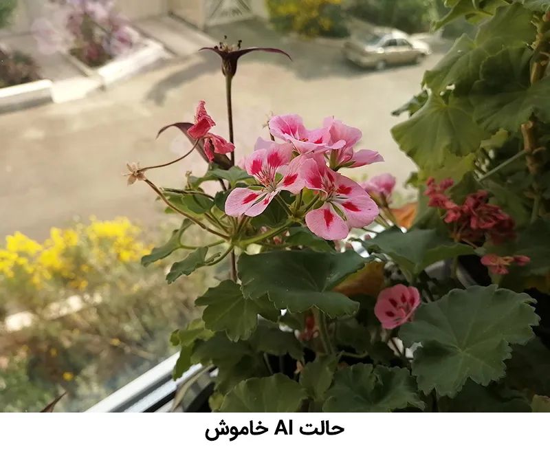 رنگ‌ها نیز به حالت طبیعی و آن چیزی که چشم می‌بیند، نزدیک‌تر است و خبری از اشباع رنگ یا تغییر آن‌ها وجود ندارد که خبر خیلی خوبی است. البته ممکن است بعضی رنگ‌های اشباع شده را بیشتر بپسندند که درواقع همین جاست که ویژگی AI به کار می‌آید. هوش مصنوعی در اپلیکیشن این دوربین می‌تواند به صورت لحظه‌ای تا 22 صحنه را تشخیص دهد و تنظیمات و رنگ‌ها را با توجه به آن تغییر دهد. برای مثال اگر بخش زیادی از عکس شما را آسمان تشکیل داده باشد، با AI رنگ آبی آسمان بیشتر می‌شود.