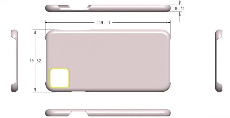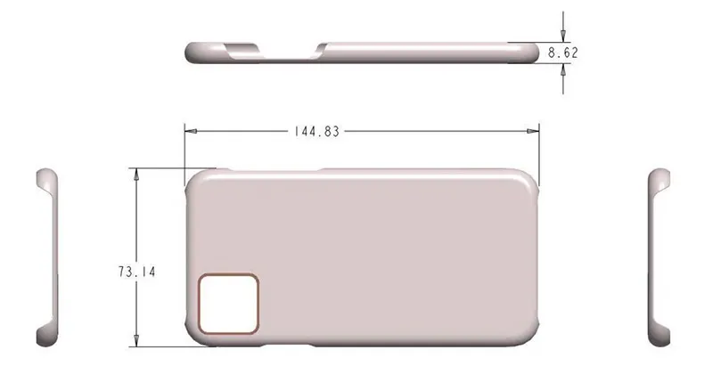 همچنین در این تصاویر که قاب محافظ آیفون‌های جدید را نشان می‌دهد، می‌توانیم به ابعاد دقیق این گوشی‌ها نیز برسیم. طبق تصویر زیر، آیفون بزرگ‌تر، ابعادی معادل 159.11 در 79.62 میلی‌متر و آیفون کوچک‌تر، ابعاد 144.83 در 73.14 میلی‌متری دارد. این ابعاد، به ابعاد آیفون XS بدون قاب محافظ که معادل 143.6 در 70.9 میلی‌متر و آیفون XS مکس با ابعاد 157.5 در 77.4، شباهت دارد.