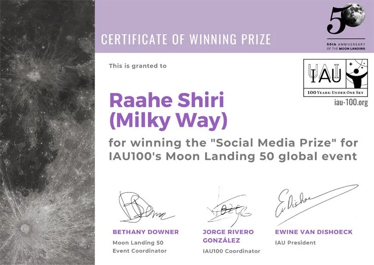 تقدیر اتحادیهی بینالمللی نجوم از برنامهی راهشیری