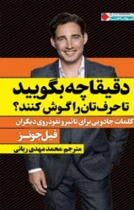 کتاب «دقیقا چه بگویید تا حرفتان را گوش کنند، کلمات جادویی برای تاثیر و نفوذ روی دیگران» نوشته فیل جونز است که محمد مهدی ربانی آن را به فارسی ترجمه کرده است و توسط نشر نگاه نوین به بازار عرضه شده است. این کتاب در بیست و دو فصل به مهارت ها و تواناییهای ارتباط کلامی پرداخته است.