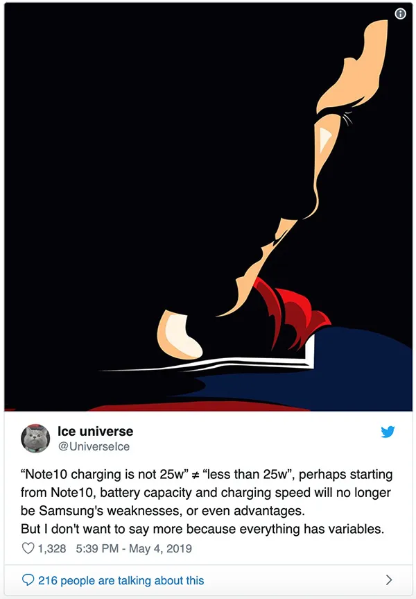 متاسفانه هنوز دقیق مشخص نیست که شارژر گلکسی نوت 10 چند واتی خواهد بود اما اینکه میدانیم ظرفیت باتری و سرعت شارژر دیگر برای سامسونگ یک پاشنه آشیل نیست، خبر خوشحال کنندهای است. پیشتر در خبرها داشتیم که گلکسی نوت 10 پرو نیز در کنار نوت 10 معمولی معرفی خواهد شد و این گوشی باتری پرظرفیت 4500 میلیآمپری خواهد داشت. اگر این ظرفیت باتری حجیم حقیقت داشته باشد و سامسونگ بتواند شارژری با سرعت 50 وات برای باتری این گوشی بسازد، خبر بسیار خوشحال کنندهای خواهد بود.