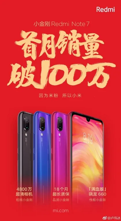 شیائومی توانست ۱ میلیون ردمی نوت ۷ در یک ماه بفروشد
