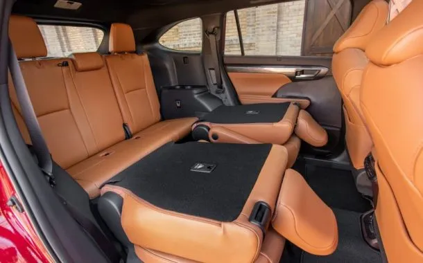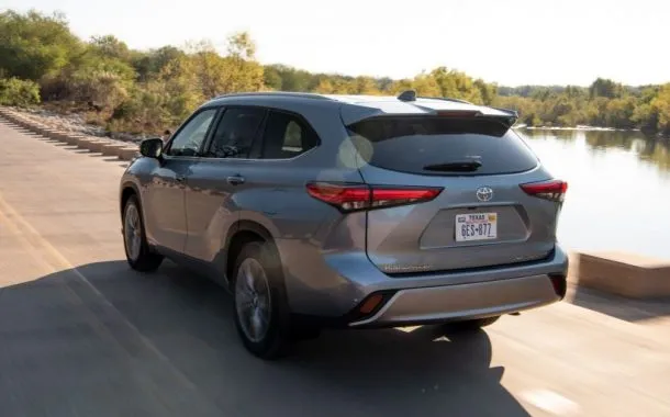 در نمای عقب اسپویلر نصب شده روی شیشه‌ی عقب، چراغ‎های افقی باریک و دو تکه و فرورفتگی مخصوص جای پلاک از بارزترین خصوصیات تویوتا هایلندر 2020 هستند. در این بخش نمایان بودن اجزای مربوط به سیستم اگزوز از زیر سپر یک نکته منفی به حساب آمده و به جذابیت بصری خودرو ضربه زده است.