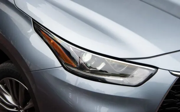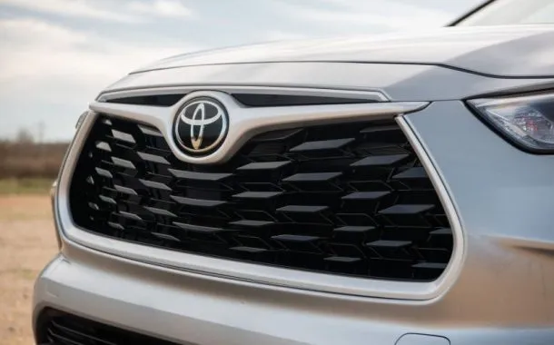لوگوی تویوتا در هایلندر 2020 درون المانی بال‌مانند قرار دارد