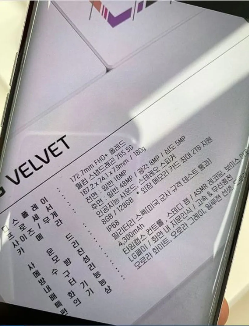 در حالی‌که طرفداران ال‌جی منتظر معرفی پرچم‌دار بعدی از سری ‌‌‌‌‌‌‌G این شرکت با نام ال‌جی G9 بودند، کمپانی کره‌ای تصمیم گرفت راه متفاوتی را پیش بگیرد و از سری جدید Velvet رونمایی کرد. اولین نسل از این خانواده از مشخصاتی برخوردار است که پیش‌تر در خبرها به ال‌جی G9 نسبت داده می‌شد؛ مهم‌ترین این مشخصات، بهره‌مندی از چیپ اسنپ دراگون ۷۶۵ با مودم 5G است.
