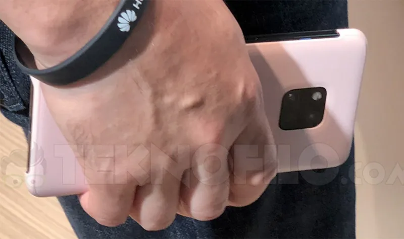در این عکسها نام هواوی روی دستبند شخصی که گوشی را در دست گرفته نیز مشاهده میشود که میتوان نتیجه گرفت او یکی از کارکنان غرفه هواوی بوده است. همچنین روی گوشی یک قاب قرار گرفته که با وجود قاب، گوشی ضخامت زیادی دارد و شاید این ضخامت زیاد به نوعی حضور باتری 4200 میلیآمپری را تایید کند. همچنین سه دوربین پشتی گوشی نیز به خوبی قابل مشاهده است.