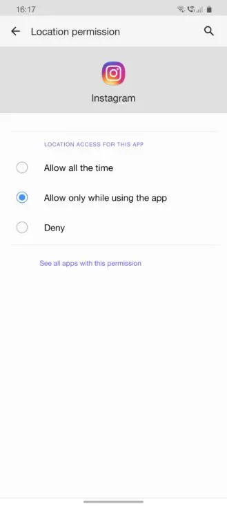 این یعنی برنامه‌هایی نظیر فیسبوک و اینستاگرام در حالی که اجرا شده هستند می‌توانند به موقعیت مکانی شما دسترسی داشته باشند اما به محض اینکه آن‌ها را بستید، این دسترسی قطع می‌شود. این سخت‌گیری باعث شده استفاده از برنامه‌هایی که به آن‌ها اعتماد نداریم ساده‌تر از قبل شود. با این اوصاف هنوز هم می‌توانید به برنامه‌های خود دسترسی همیشگی بدهید. فقط کافی است از طریق تنظیمات گوشی، وارد بخش اطلاعات (Info) آن برنامه شده و با لمس گزینه Permission یا همان اجازه دسترسی، آنچه را که می‌خواهید اعمال کنید.