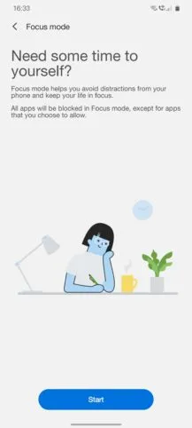 حالت تمرکز که بخشی جدید از برنامه Digital Wellbeing است، با هدف متمرکز نگه داشتن کاربر روی انجام کار طراحی شده تا بدین صورت فعالیت‌های دیگر گوشی باعث پرت شدن حواس وی نشود. به صورت پیش فرض، دو پروفایل برای این حالت تعریف شده: وقت کار (Work Time) و وقت من (Me Time). هر کدام از آن‌ها لیستی از برنامه‌ها را برای شما به نمایش در می‌آورند که می‌توانید آن‌ها را ویرایش کرده و تنظیماتی که مد نظرتان هست را روی آن‌ها اعمال کنید.