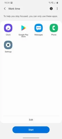برای مثال در حالت «وقت کار» می‌توانید برنامه Phone یا تلفن، ماشین حساب، تقویم، تنظیمات و یا هر چیز دیگری که می‌خواهید حین کار از آن‌ها استفاده کنید به لیست اضافه کنید. برنامه‌هایی که در لیست حضور ندارند هم به حالت تیره در می‌آیند و در منوی خانه یا به عبارتی در صفحه اصلی گوشی از دسترس خارج می‌شوند تا اینکه حالت تمرکز را خاموش کنید.