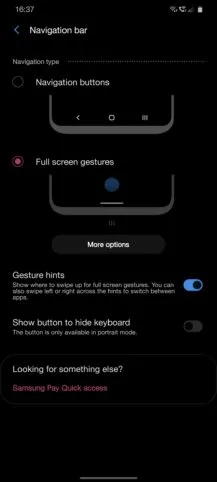 همچنین می‌توانید ترتیب کلیدها را هم در صورت تمایل شخصی سازی کنید. مثلا آن‌ها را از چپ به راست یا راست به چپ تنظیم کنید که در هر دو صورت دکمه خانه (Home) در وسط قرار می‌گیرد. اگر هم با فعال کردن ژست ناوبری کار کردن با گوشی کمی برایتان سخت شد می‌توانید Gesture Hint را فعال کنید که خب ظاهر زیبایی به گوشی نمی‌دهد و بهتر است بعد از یاد گرفتن نکات، آن را غیر فعال کنید. با فعال کردن ژست کاربری دیگر مجبور نیستید نوار مخصوص کلیدها را روی گوشی ببینید و می‌توانید از یک گجت با نمایشگر بزرگ لذت ببرید.