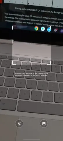 گوگل اما تصمیم گرفت در اندروید 10 این قابلیت را بهبود بخشد و تمام فرایند را از طریق اشتراک گذاری کد QR انجام دهد. بدین ترتیب دوستان شما تنها کاری که باید انجام دهند اسکن کردن این کد است و سپس اتصال انجام خواهد شد. برای اسکن کردن کد QR و اتصال به وای‌فای، دو راه وجود دارد. برنامه دوربین را باز کنید و سپس بیکسبی ویژن (Bixby Vision) آن را برای شما اسکن می‌کند. در غیر این صورت باید روی گزینه QR در منوی وای‌فای گوشی کلیک کنید تا بتوانید کد را اسکن کنید.