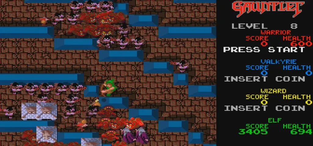 بسیاری از بازیهای ویدیویی این روزها به خصوص اگر روی پاکسازی سیاه چالها تمرکز کنند، روی محور عناصر چند نفرهی کوآپ میچرخند. در این میان اگرچه عنوان اولین اثر سبک Dungeon Crawler که به آرکید آمد به Gauntlet نمیرسد، اما احتمالا مهمترین آنها بود. بازی Gauntlet که در سال 1985 منتشر شد، به عنوان اولین Dungeon Crawler چندنفرهی صنعت، دنیای آرکید را تکان داد. هر دور از بازی به بازیکنان وظیفهی پیدا کردن راه خروج به سیاه چالهایی را میداد که با دشمنان غرق شده بودند.
