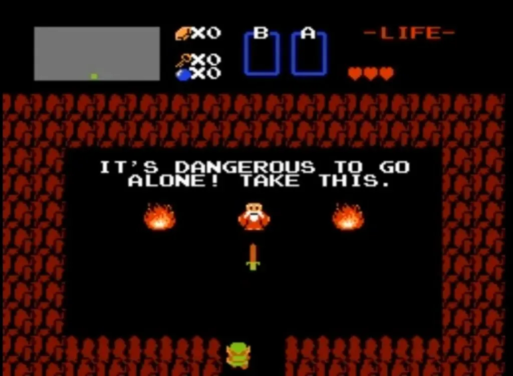 بازی The Legend of Zelda برای NES با ورود لینک به یک غار و یک پیرمرد ناشناس که به او یک شمشیر پیشنهاد میکند، شروع میشود. پیرمرد به لینک میگوید که تنها رفتن خطرناک است و حداقل برای اکثر بازیکنان، ماجراجویی این گونه آغاز میشود که شمشیر را برمیدارند، اما به نظر میرسد که میتوانید تقریبا کل مراحل بازی را بدون برداشتن شمشیر به اتمام برسانید. البته، این کار آسانی نیست.