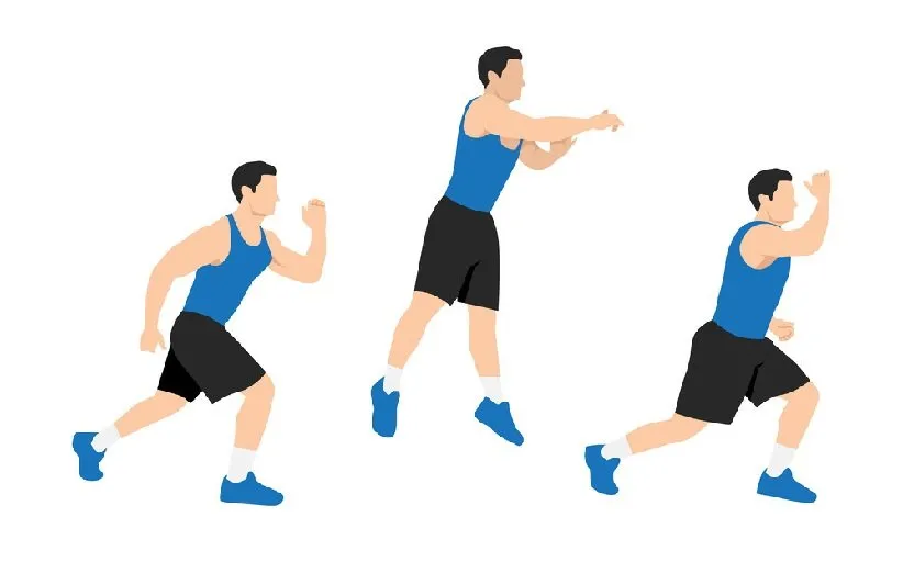 تمرین لانگ پرشی یکی دیگر از انواع لانگ است که کارآمدی و تأثیرگذاری بالایی دارد. شیوهی اجرای این تمرین مانند لانگ معمولی است، ولی هنگامی که میخواهید بایستید و پاها را با یکدیگر عوض کنید، باید یک پرش بلند اجرا کرده و پاها را در هوا جابهجا کنید. این تمرین را هم میتوانید برای 1 دقیقه انجام دهید.